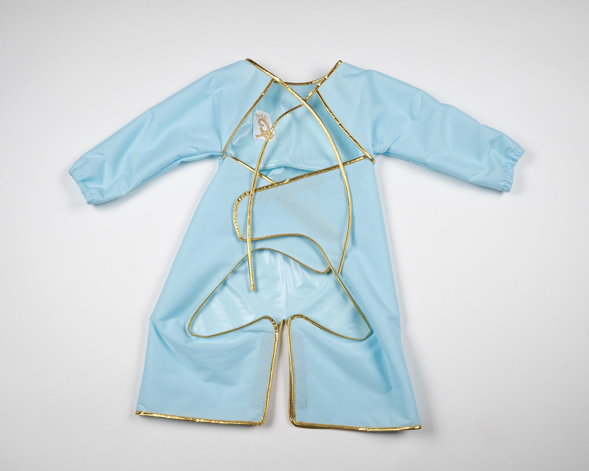 - Full coverage: all bibs feature full sleeve protection for the arms, behind-the-back closure to ensure protection of the child’s sides, and specialized leg wraps which can easily be applied after the child is seated in their mealtime chair